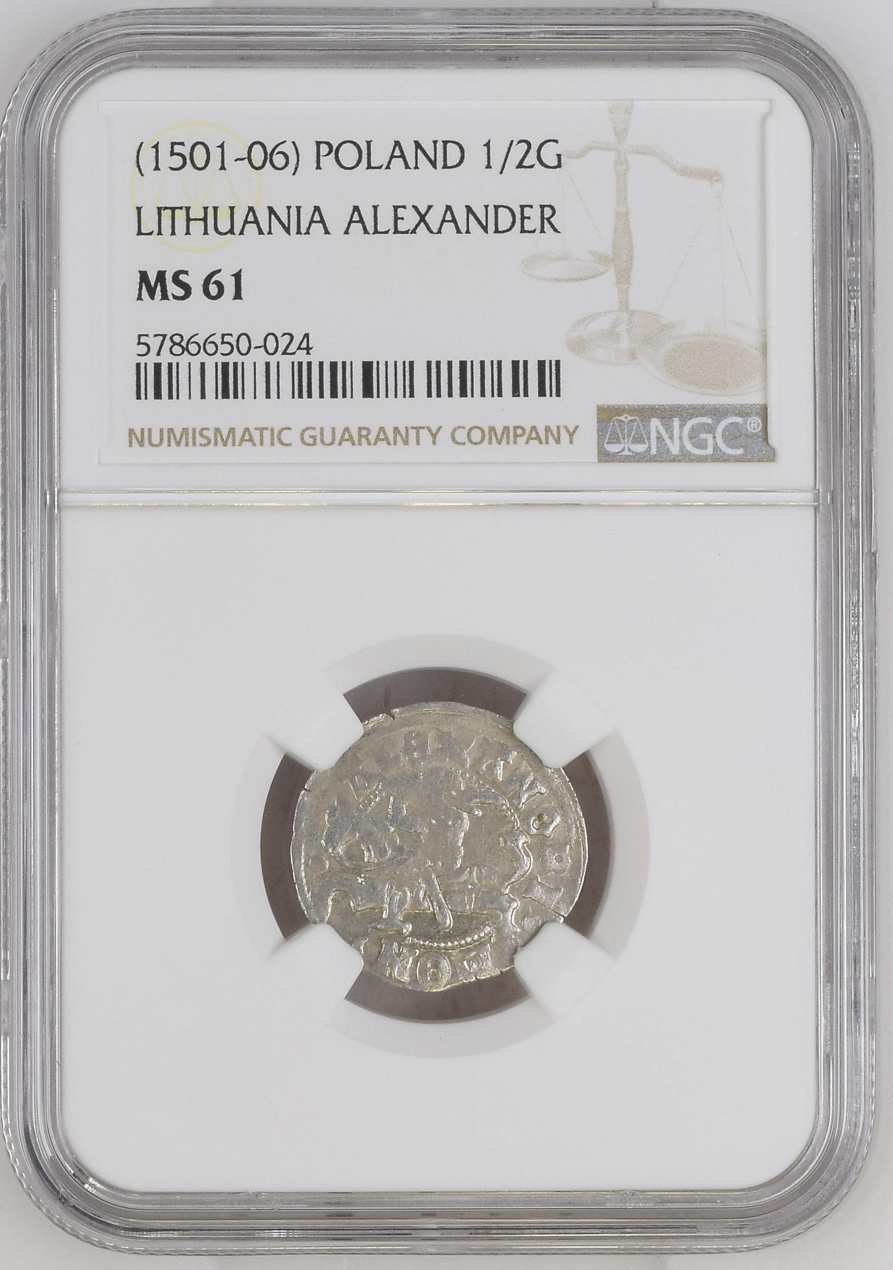 1501 POLAND 1/2G LITHUANIA NGC MS 61
