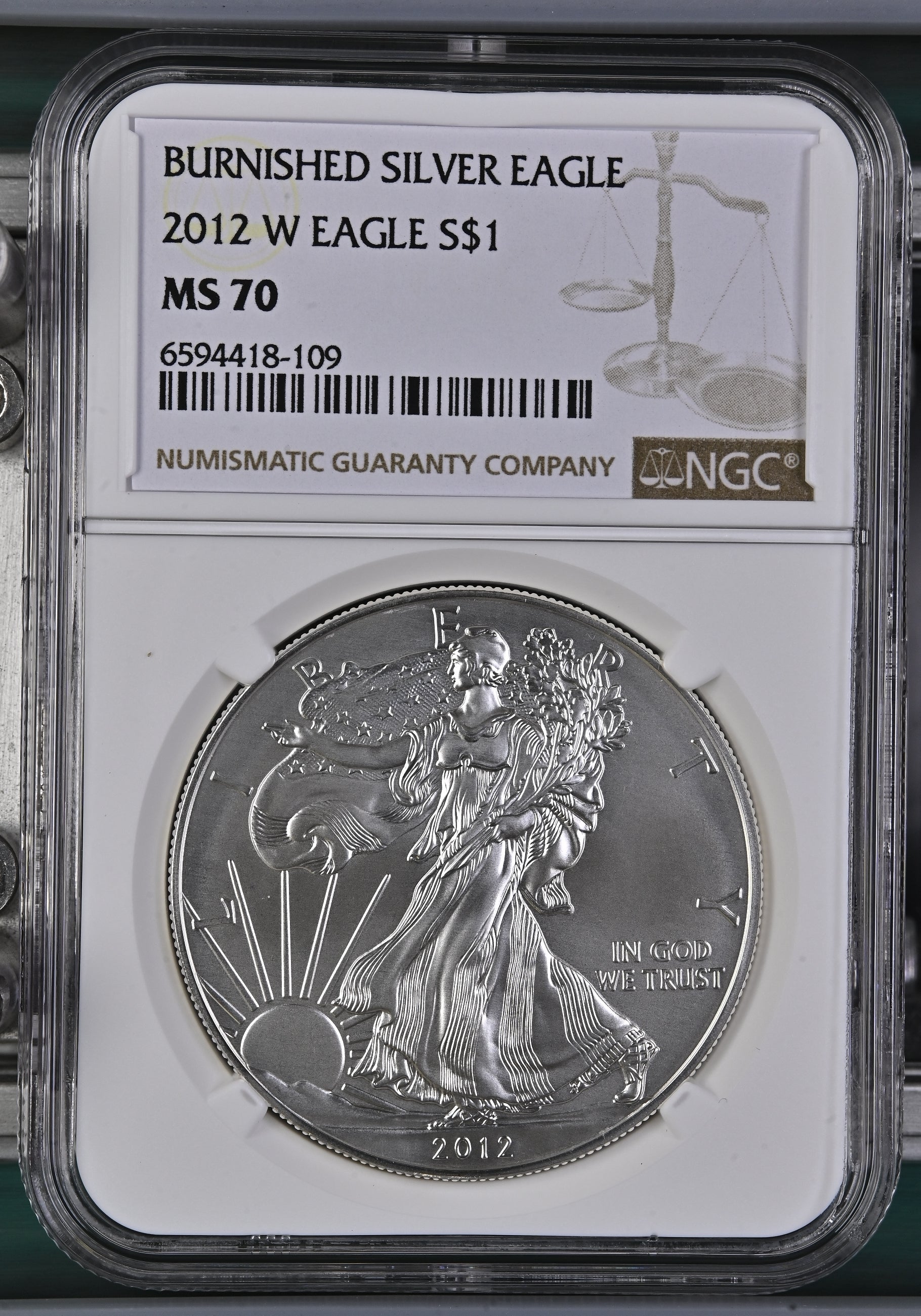 2012 W EAGLE S$1 BURNISHED SILVER EAGLE MS 70