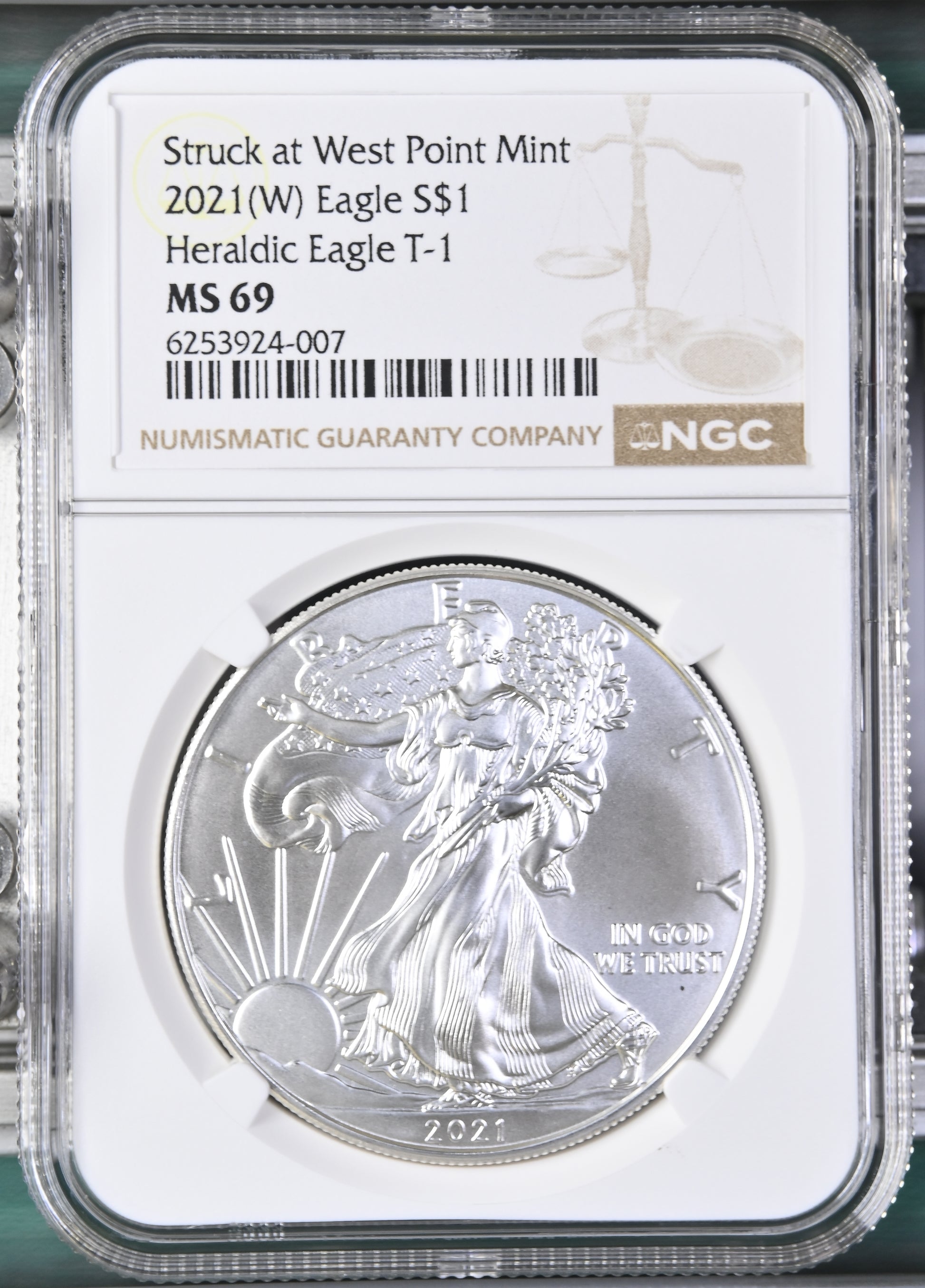 2021 (W) EAGLE S$1 STRUCK AT WEST POINT MINT HERALDIC EAGLE T-1 MS 69