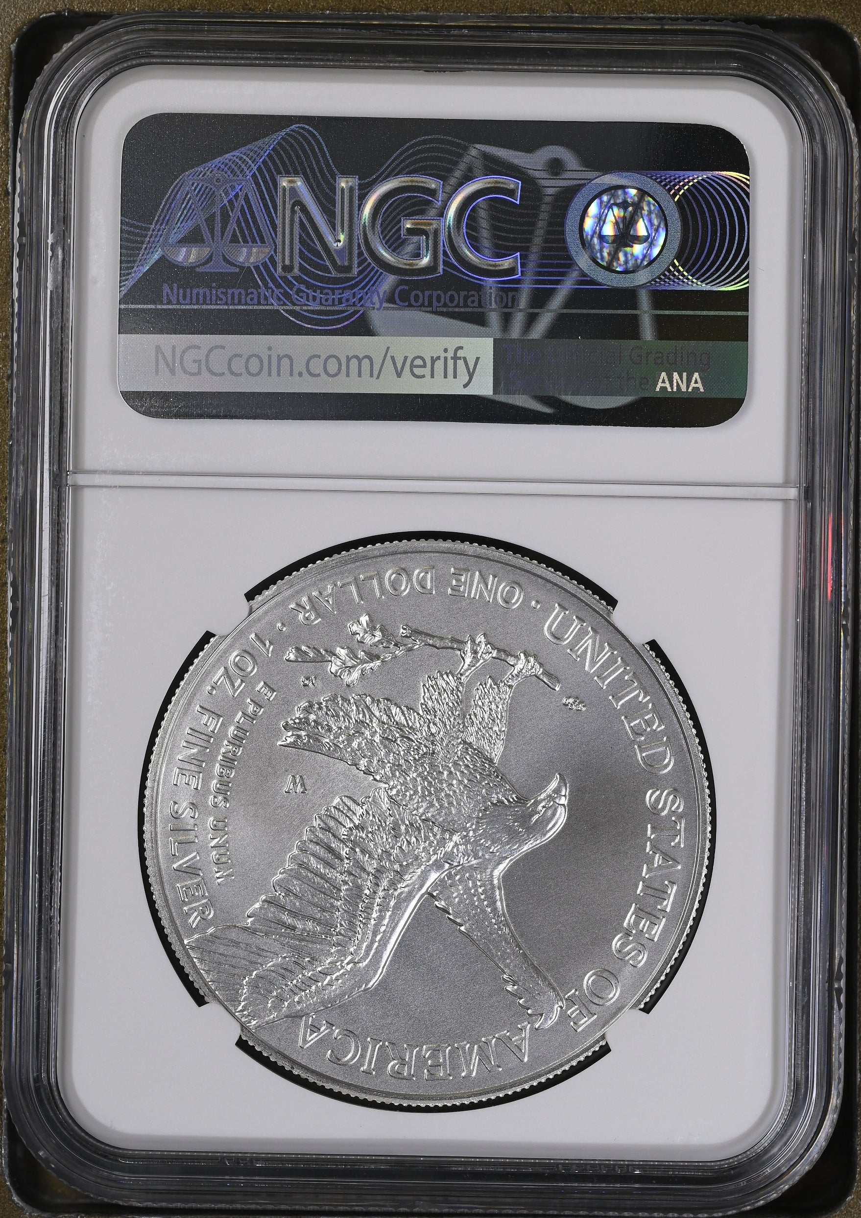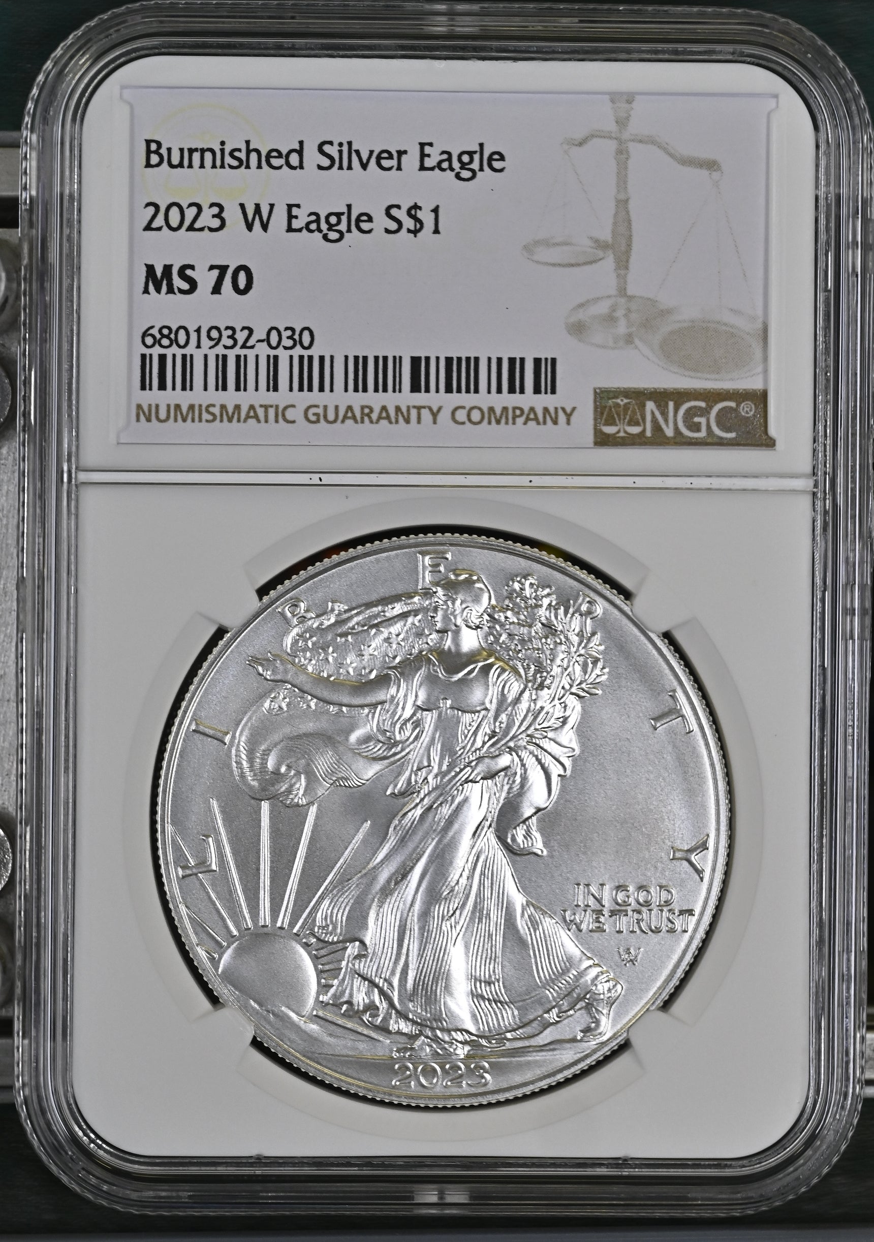 2023 W BURNISHED SILVER EAGLE S$1 MS 70
